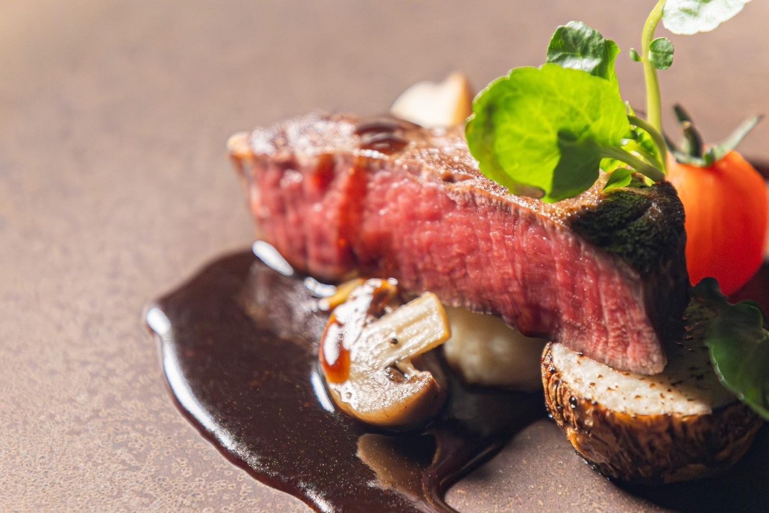 特選牛フィレ肉のソテー 茸のオーブン焼きと共に マスタードソース